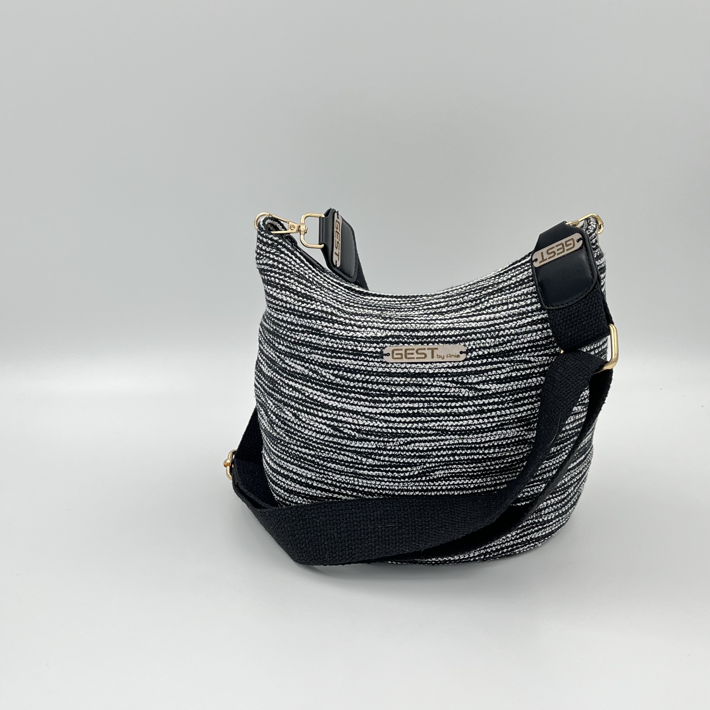 Torebka typu klasycznego, dość duża. Wykonana ze sznurka bawełnianego (5mm) z rdzeniem poliestrowym. W środku wykończona podszewką koloru czarnego w białe kropki, w której znajduje się kieszeń zapinana na zamek. Pasek czarny miękki. Torebka w całości ręcznie robiona, unikatowa dostępna w jednym egzemplarzu.